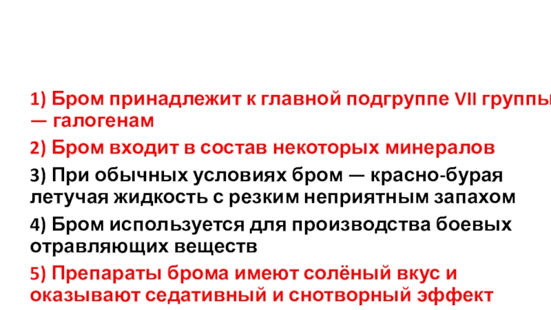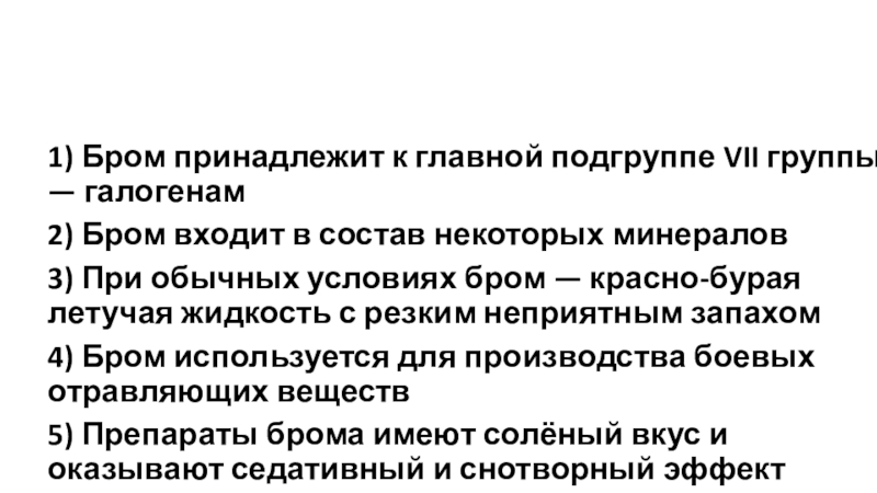 5) Препараты брома имеют солёный вкус и оказывают седативный и снотворный эффект
