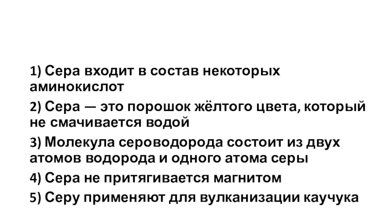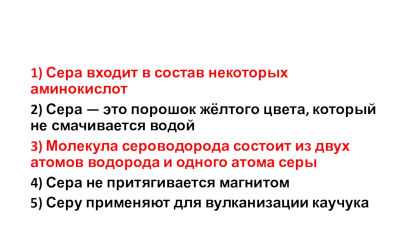 Слайд 61) Сера входит в состав некоторых аминокислот