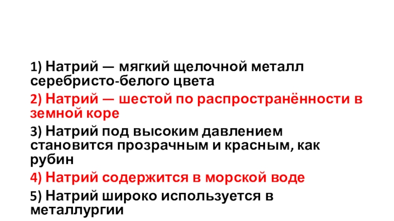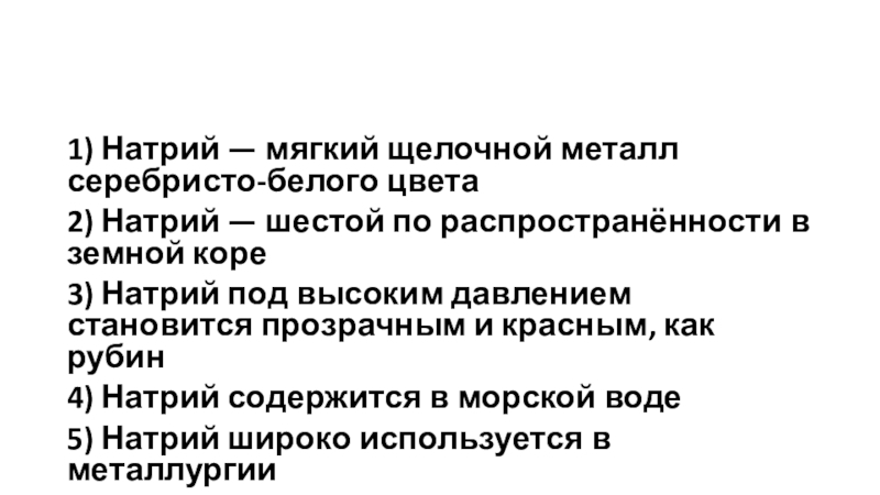 Слайд 301) Натрий — мягкий щелочной металл серебристо-белого цвета