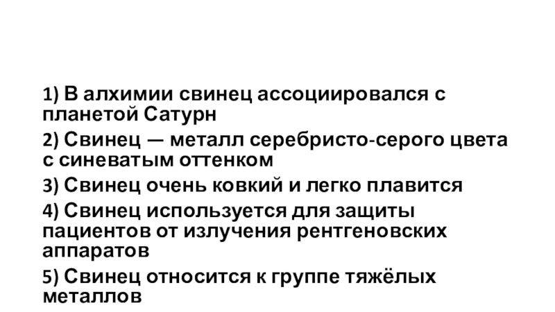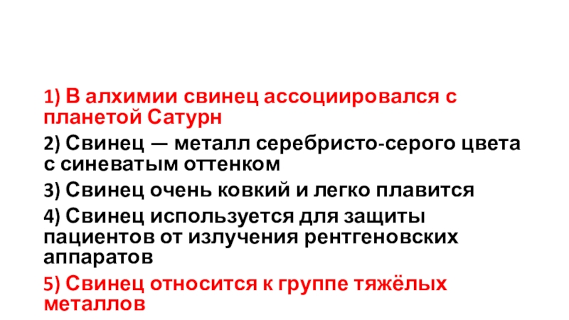 Слайд 91) В алхимии свинец ассоциировался с планетой Сатурн