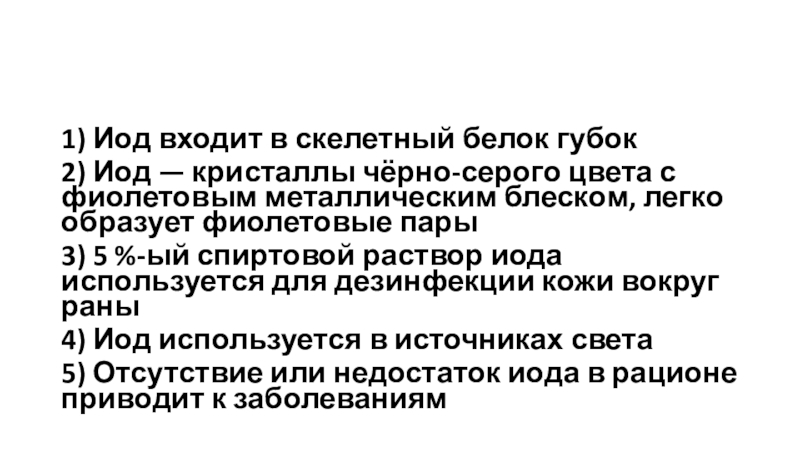5) Отсутствие или недостаток иода в рационе приводит к заболеваниям