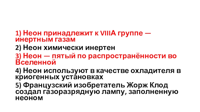 Слайд 101) Неон принадлежит к VIIIА группе — инертным газам