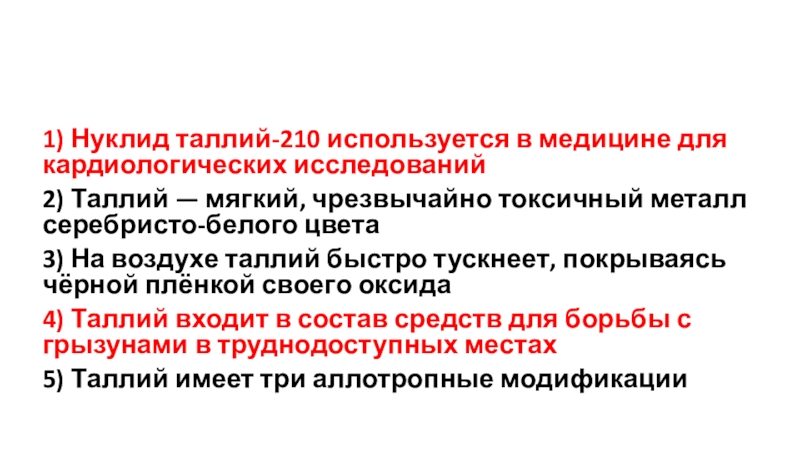 Слайд 321) Нуклид таллий-210 используется в медицине для кардиологических исследований