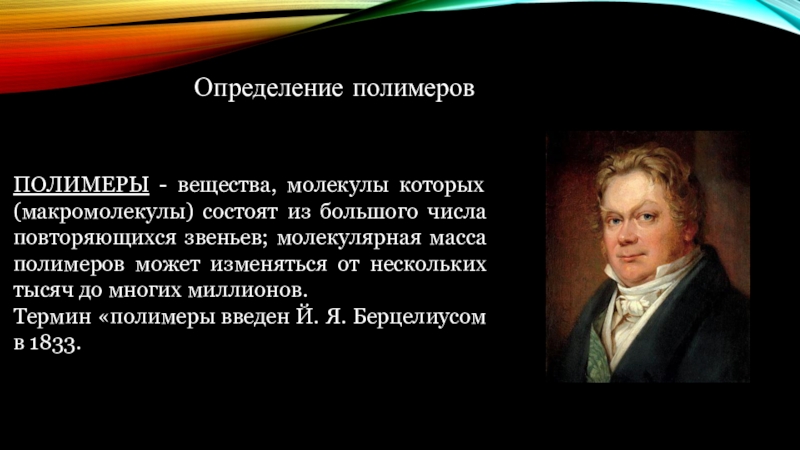 Термин «полимеры введен Й. Я. Берцелиусом в 1833.