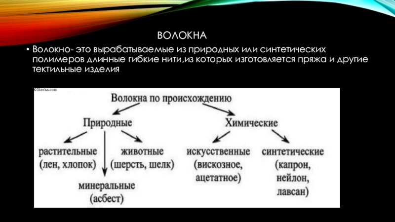 Волокно- это вырабатываемые из природных или синтетических полимеров длинные гибкие