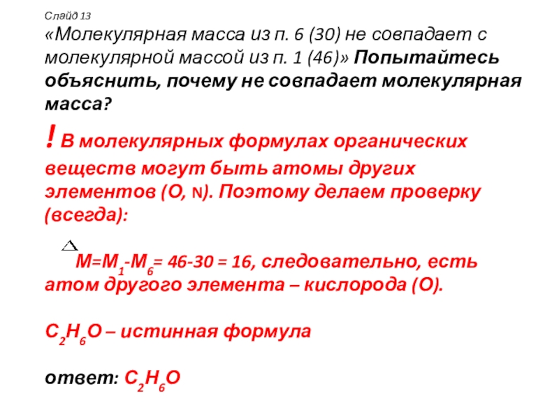 «Молекулярная масса из п. 6 (30) не совпадает с молекулярной