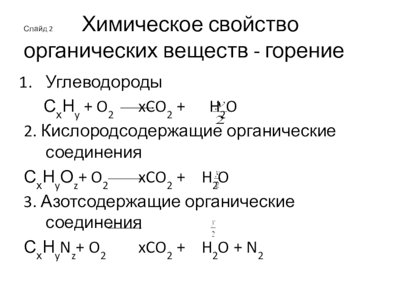Слайд 12Слайд 12 Химическое свойство органических веществ - горение