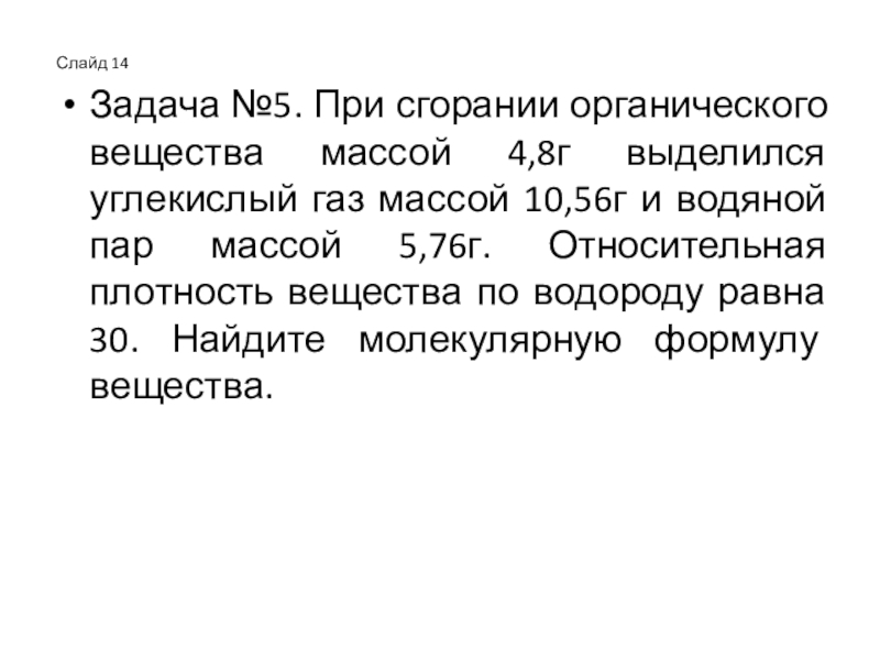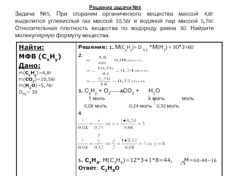 Задача №5. При сгорании органического вещества массой 4,8г выделился углекислый