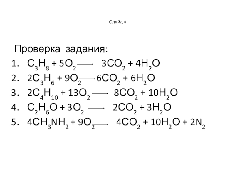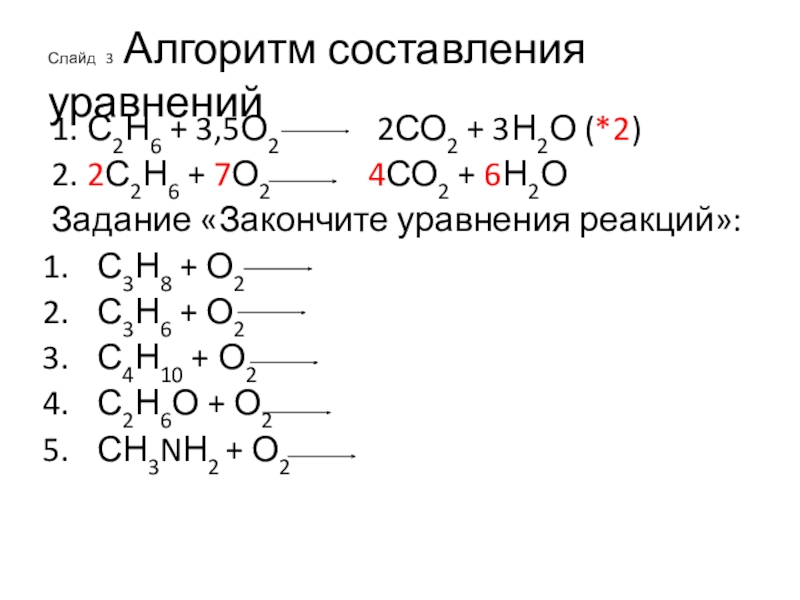 2. 2С2Н6 + 7О2 4СО2 + 6Н2О