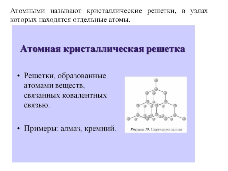 Слайд 8Атомными называют кристаллические решетки, в узлах которых находятся отдельные атомы.