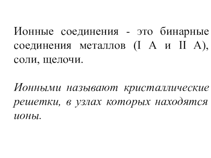 Слайд 6Ионные соединения - это бинарные соединения металлов (I А и II