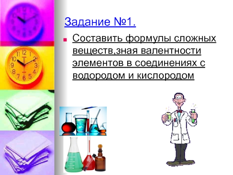 Задание №1.Составить формулы сложных веществ,зная валентности элементов в соединениях с водородом и кислородом