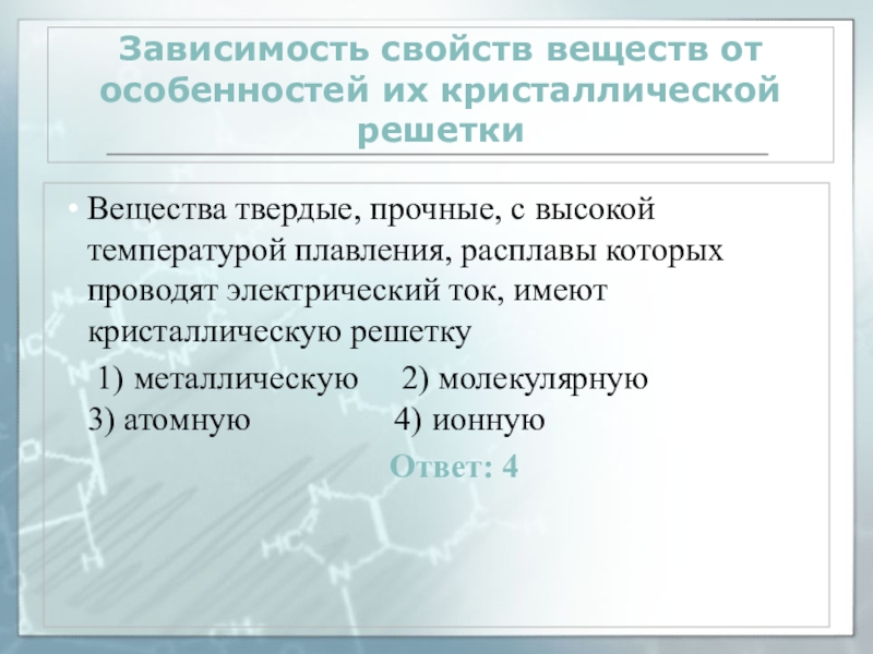 Зависимость свойств веществ от особенностей их кристаллической решетки