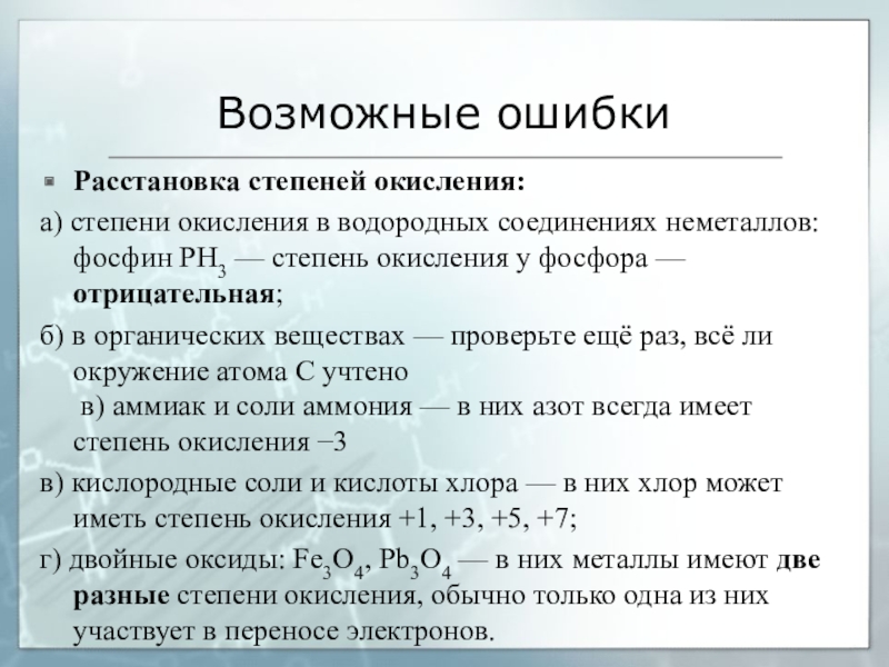 незнание окислительно-восстановительных реакций (например, с перманганатом калия).