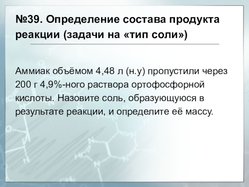Слайд 51№39. Определение состава продукта реакции (задачи на «тип соли»)