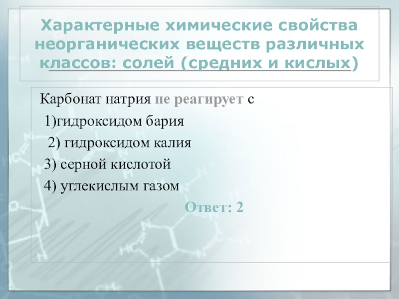 Слайд 16Характерные химические свойства неорганических веществ различных классов: солей (средних и кислых)