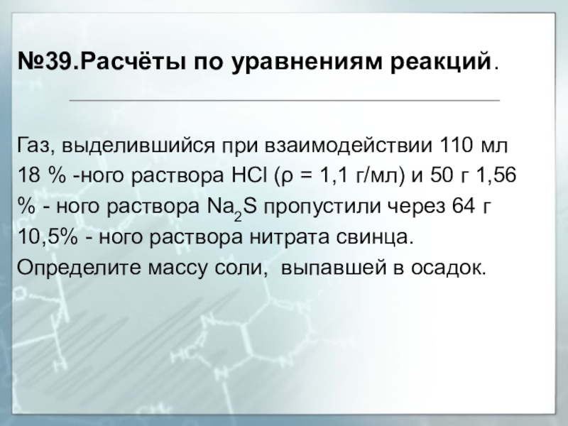 Слайд 49№39.Расчёты по уравнениям реакций.