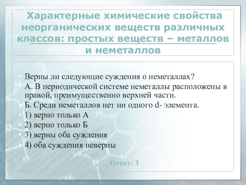 А. В периодической системе неметаллы расположены в правой, преимущественно верхней части.