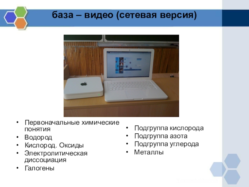база – видео (сетевая версия)Первоначальные химические понятияВодородКислород. ОксидыЭлектролитическая диссоциацияГалогеныПодгруппа кислородаПодгруппа азотаПодгруппа углеродаМеталлы