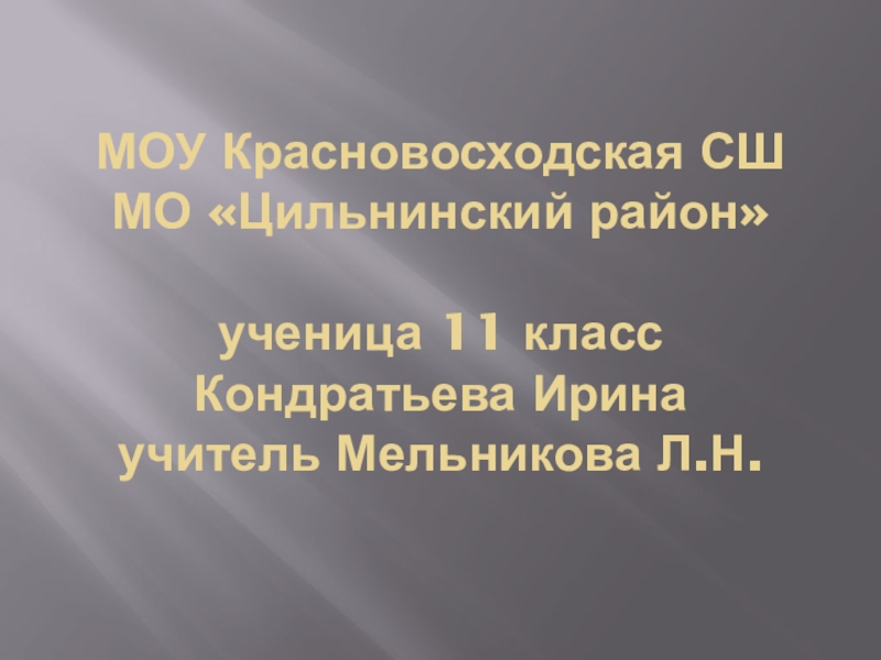 Слайд 1МОУ Красновосходская СШ МО «Цильнинский район» ученица 11 класс Кондратьева Ирина учитель Мельникова Л.Н.