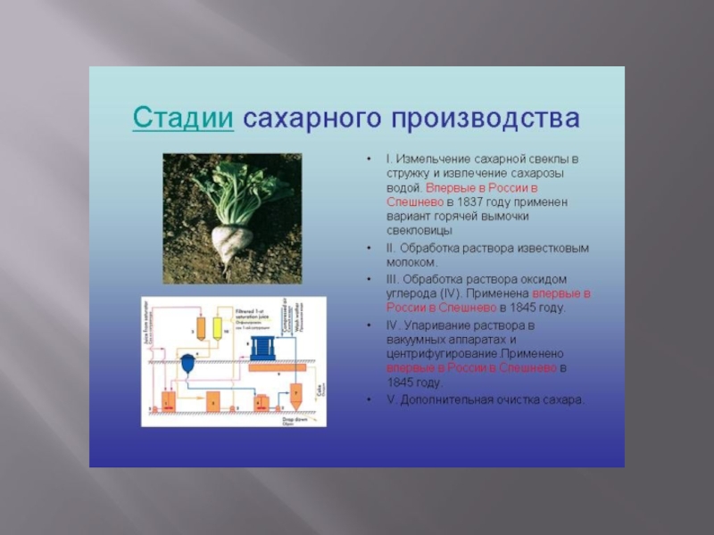 Проект на тему: «Цильнинский сахарный завод»ПланИстория развития сахарной промышленности в России.История Цильнинского сахарного завода.Технологические особенности производства сахарного