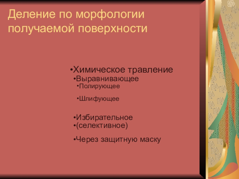 Презентация, доклад учебного проектаПрактическое применение и свойства химического травления
