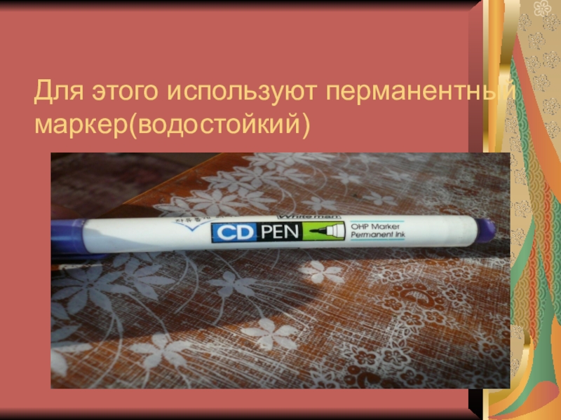 Слайд 21Для этого используют перманентный маркер(водостойкий)