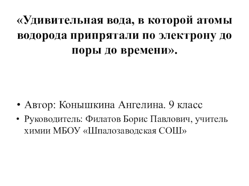 Руководитель: Филатов Борис Павлович, учитель химии МБОУ «Шпалозаводская СОШ»