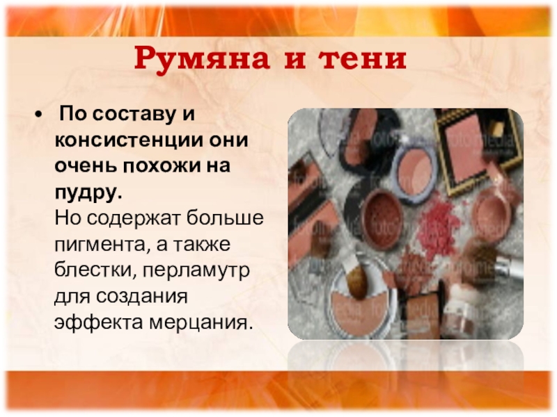 Слайд 13Румяна и тени