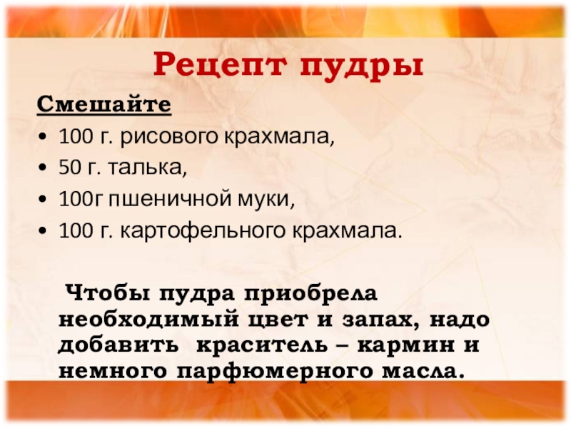 Слайд 12Рецепт пудры