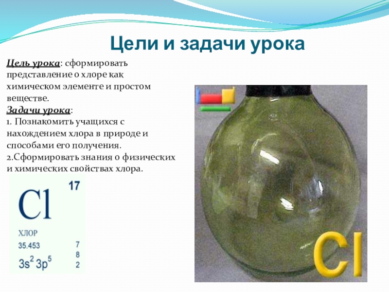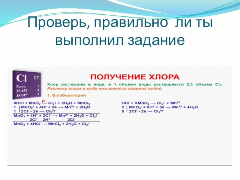Вот как описывал Шееле опыт, произведенный им в 1774 году: «Я поместил смесь черной магнезии с муриевой кислотой в реторту, к горлышку которой присоединил пузырь, лишенный воздуха, и поставил ее на песчаную баню. Пузырь наполнился газом, окрасившим его в желтый цвет: Газ имел желто-зеленый цвет и пронзительный запах».