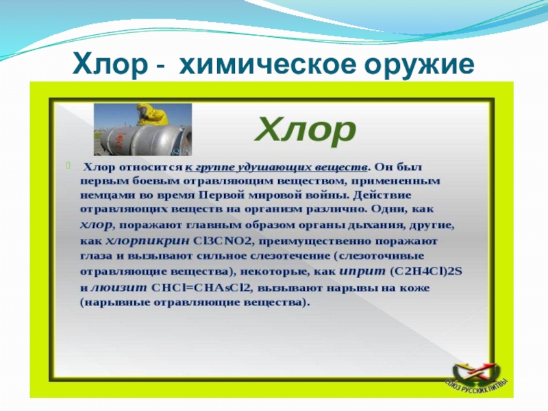 В 1812 году французский химик Гей-Люссак присвоил этому газу новое название — хлор, в переводе с греческого «желто-зеленый».