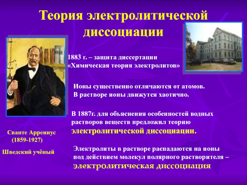 электролитической диссоциации.
