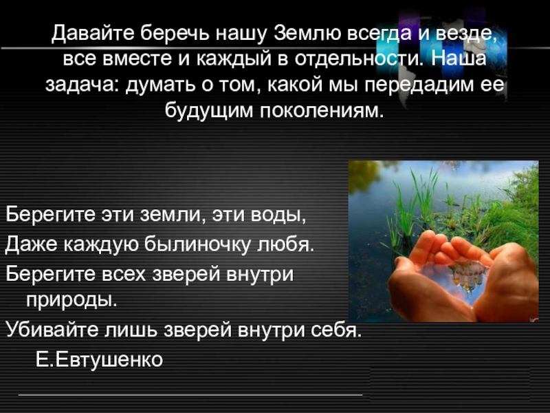 в отдельности. Наша задача: думать о том, какой мы передадим ее будущим поколениям.