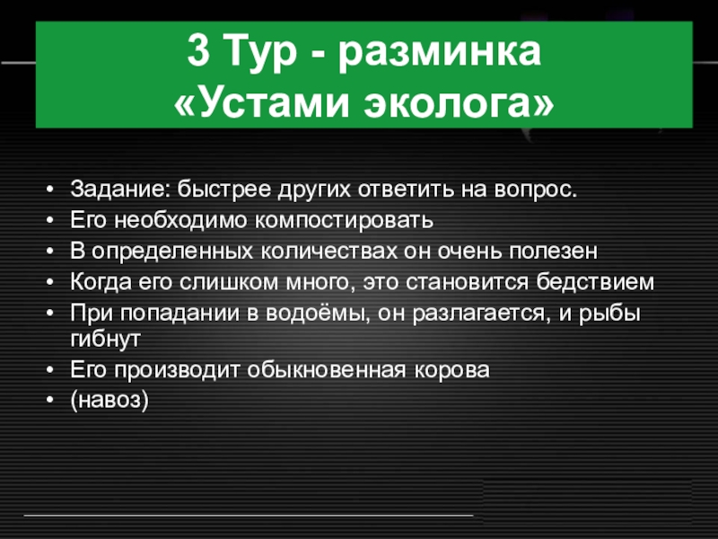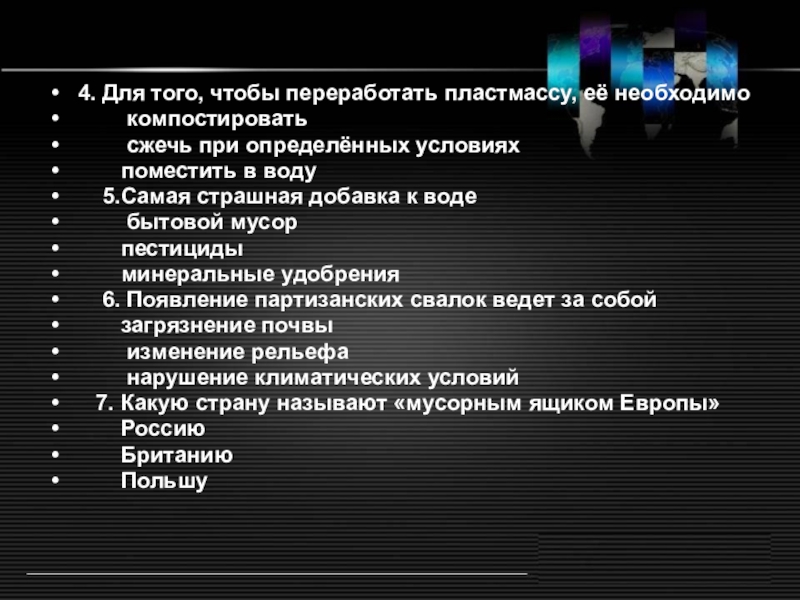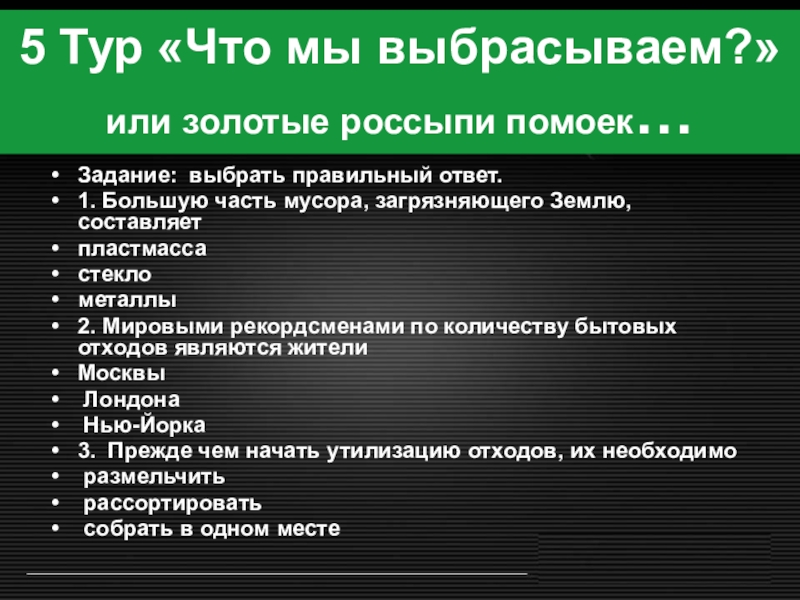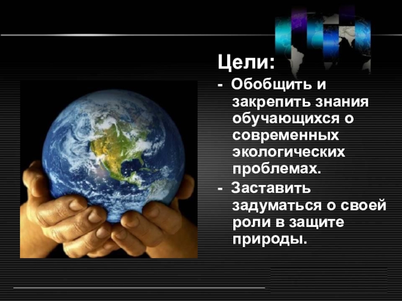 - Обобщить и закрепить знания обучающихся о современных экологических проблемах.