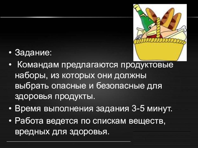 Командам предлагаются продуктовые наборы, из которых они должны выбрать опасные