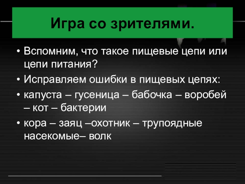 капуста – гусеница – бабочка – воробей – кот – бактерии