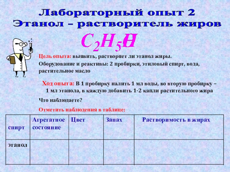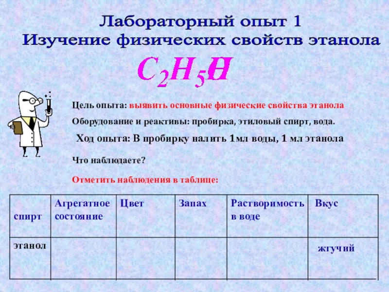 вы исследуете свойства этанола