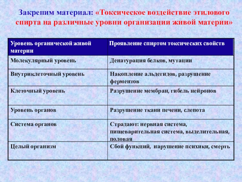 Проявление спиртом токсических свойств