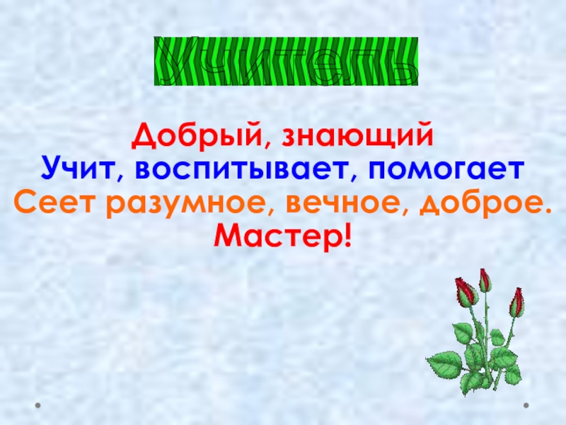 Это сайт презентаций, где можно хранить и обмениваться своими презентациями, докладами, проектами, шаблонами в формате PowerPoint с другими пользователями. Мы помогаем школьникам, студентам, учителям, преподавателям хранить и обмениваться учебными материалами.
