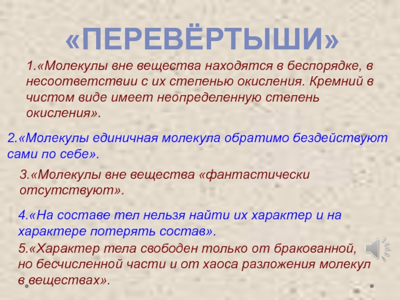 3.«Молекулы вне вещества «фантастически отсутствуют».