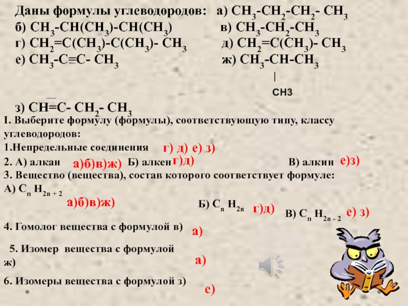 I. Выберите формулу (формулы), соответствующую типу, классу углеводородов: