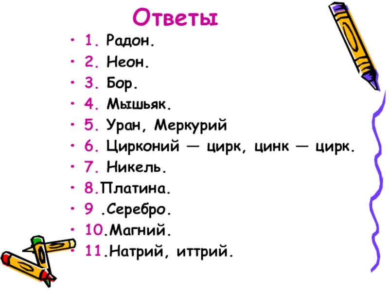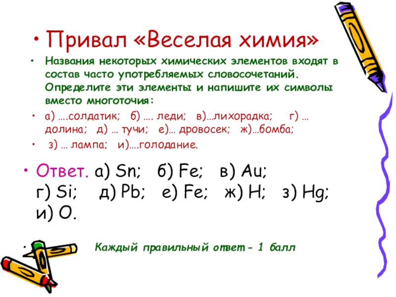 Ответ. а) Sn; б) Fe; в) Au; г) Si; д) Pb; е) Fe; ж) H; з) Hg; и) O.