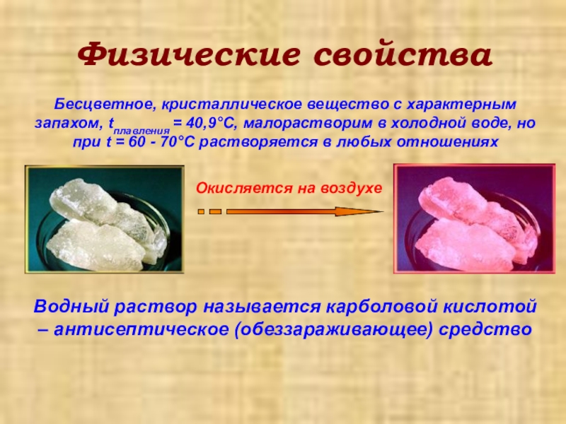 Водный раствор называется карболовой кислотой – антисептическое (обеззараживающее) средство