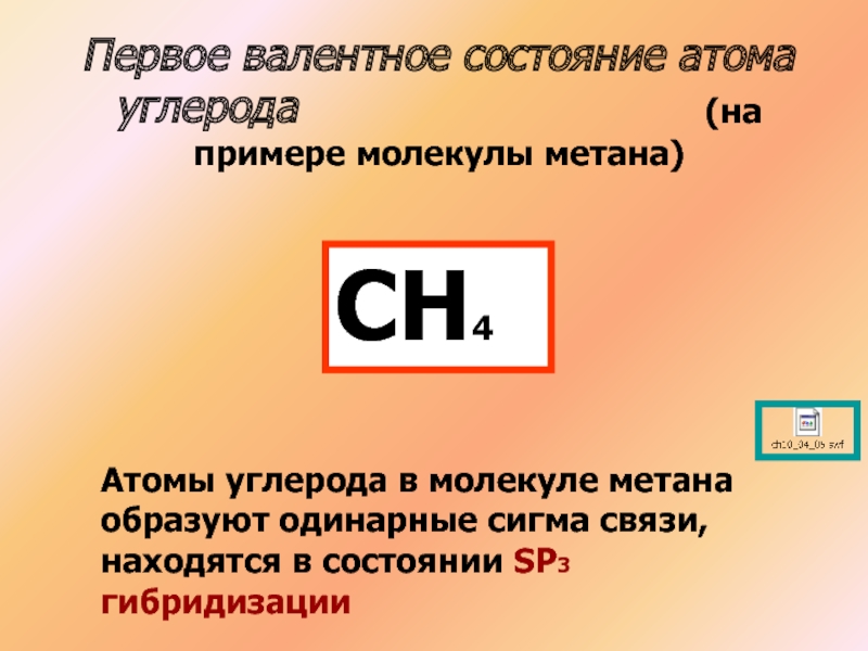 Атомы углерода в молекуле метана образуют одинарные сигма связи, находятся в состоянии SP3 гибридизации