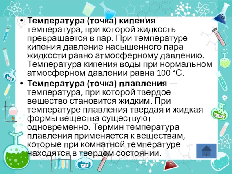 Температура (точка) кипения — температура, при которой жидкость превращается в пар.