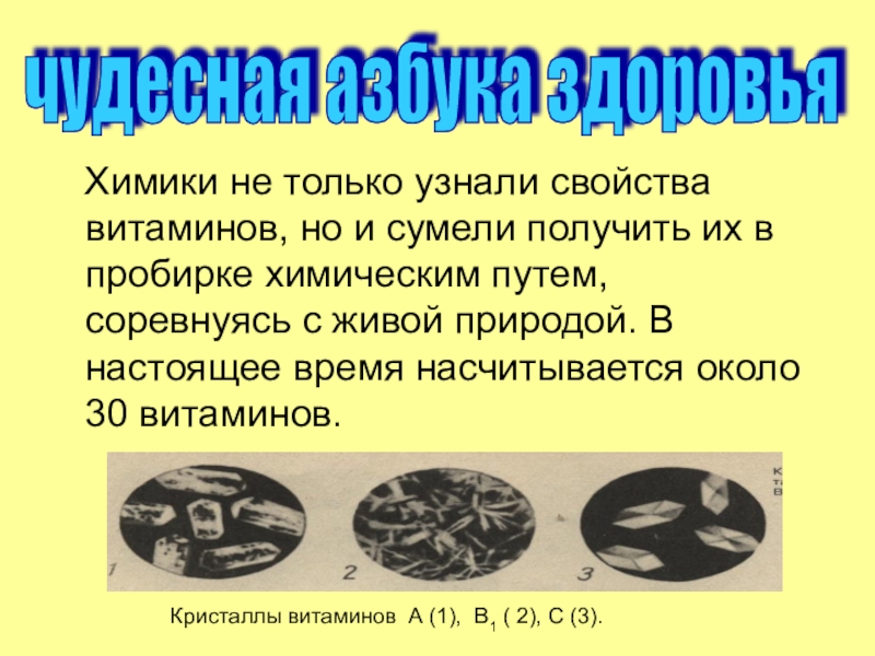 Кристаллы витаминов А (1), В1 ( 2), С (3).