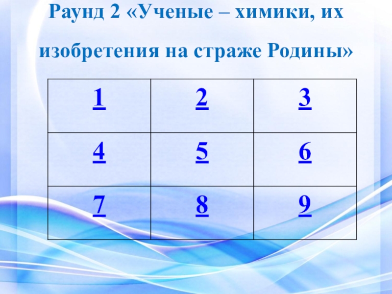 Слайд 21Раунд 2 «Ученые – химики, их изобретения на страже Родины»