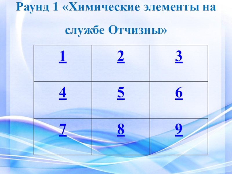 Слайд 2Раунд 1 «Химические элементы на службе Отчизны»
