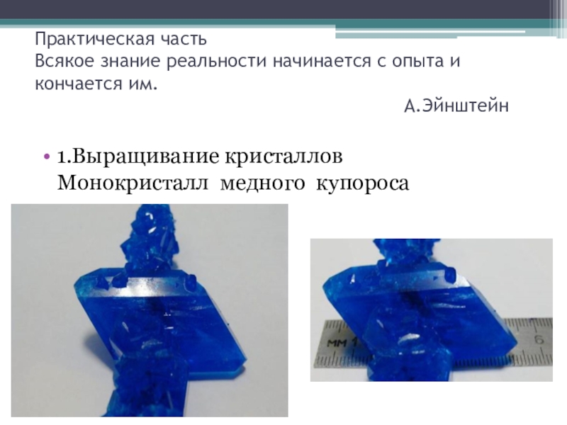 1.Выращивание кристаллов Монокристалл медного купороса